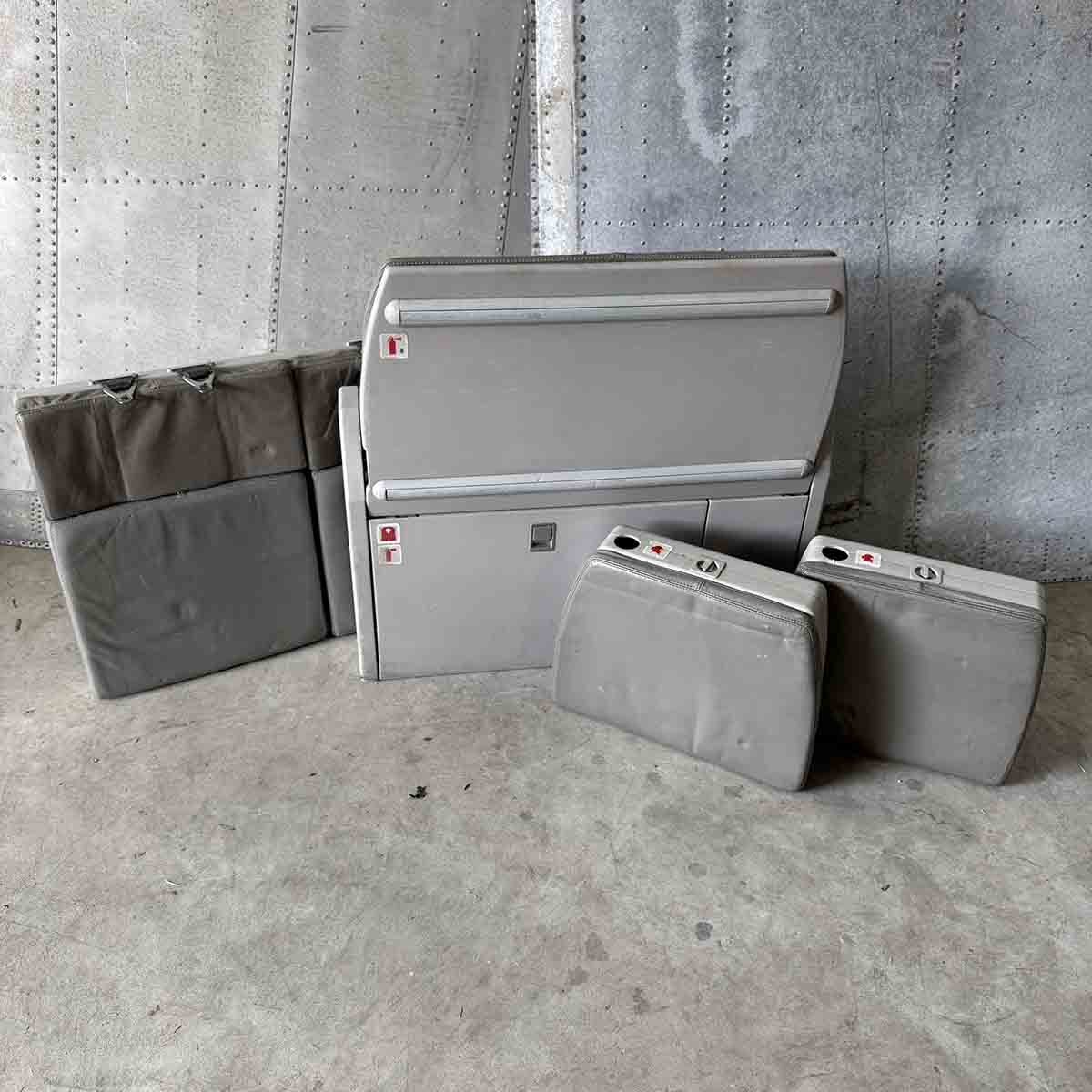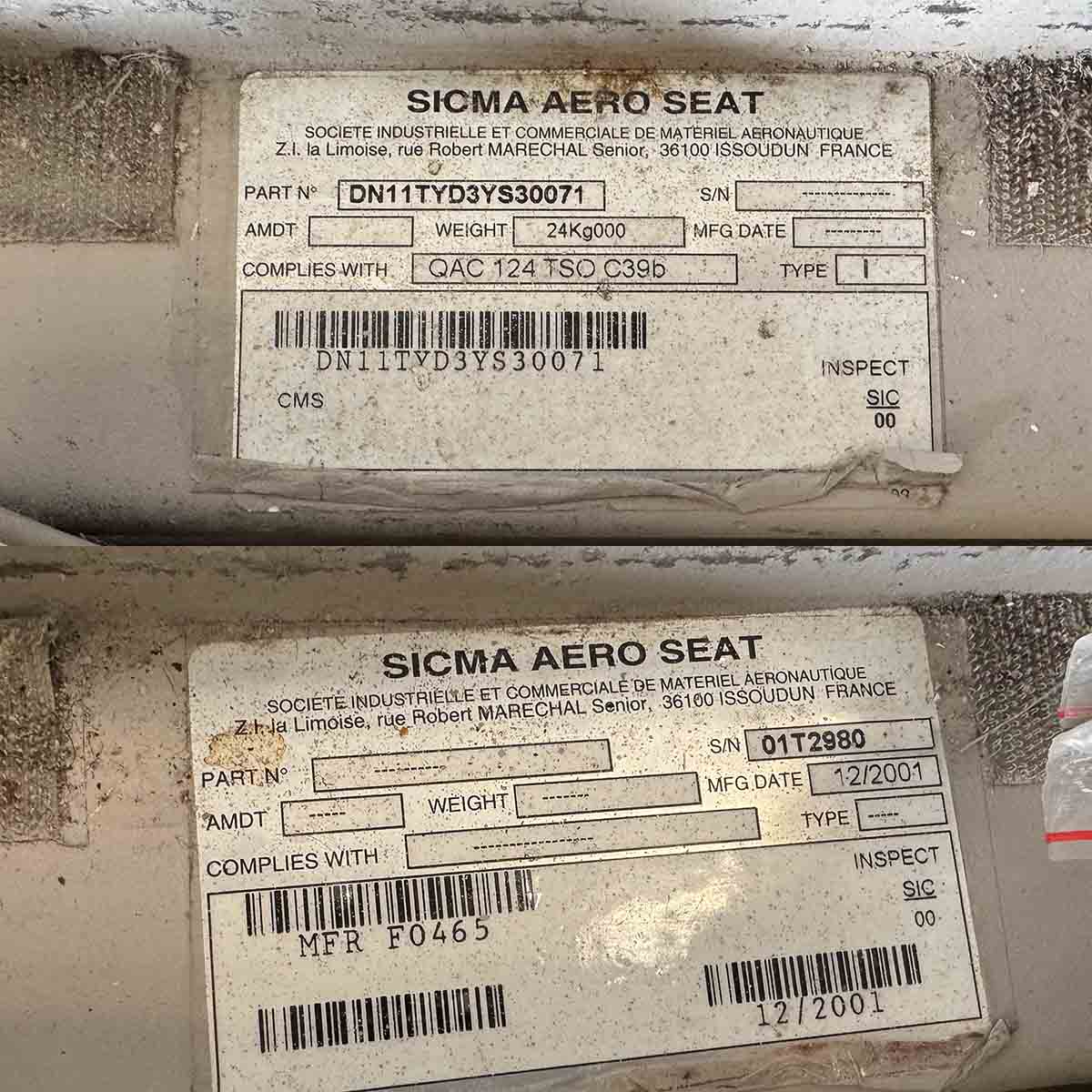 Original Sicma Aero Seat cabin crew jump seat for 2 cabin crew members. The seat was used in Air France Airbus A319 F-GRXD. Separate items (seat, back rest and head rest) need to be attached to a backplate.
