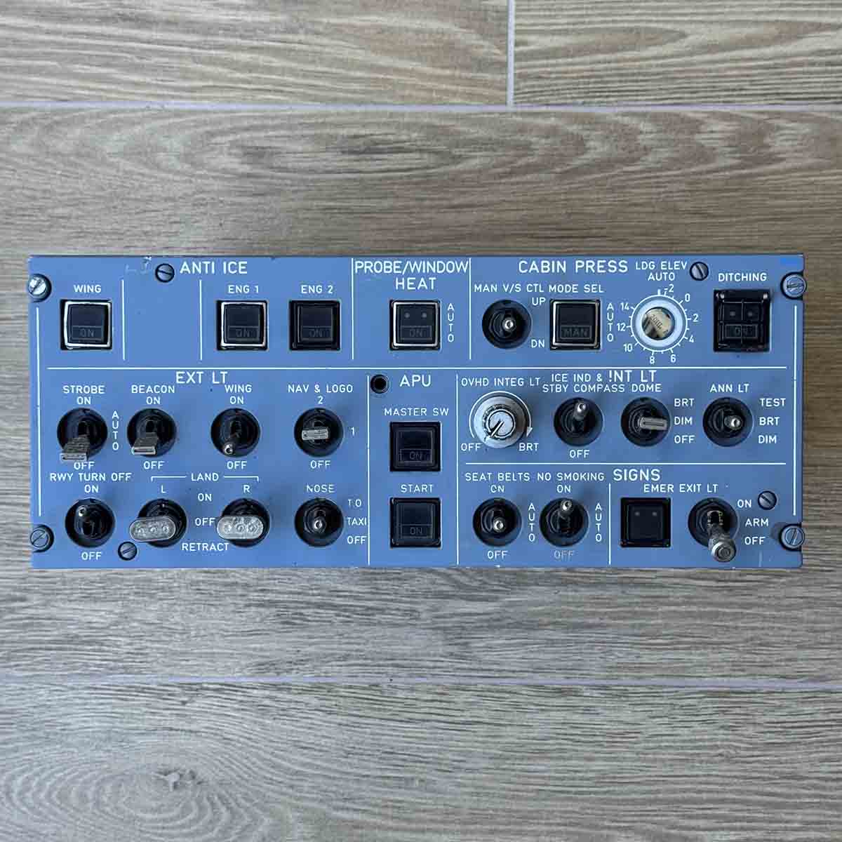 Original Airbus overhead control & indication panel. This cockpit panel was used in an Airbus A320 family aircraft.