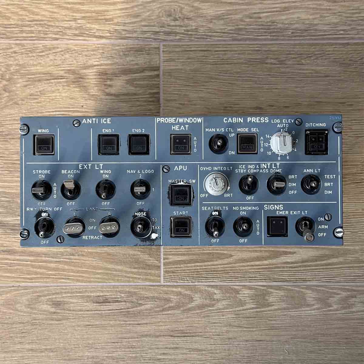 Original Airbus overhead control & indication panel. This cockpit panel was used in an Airbus A320 family aircraft.