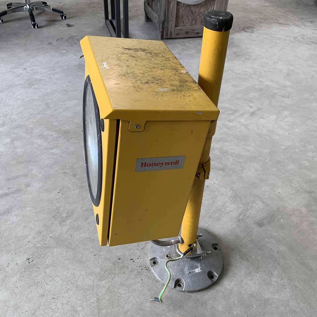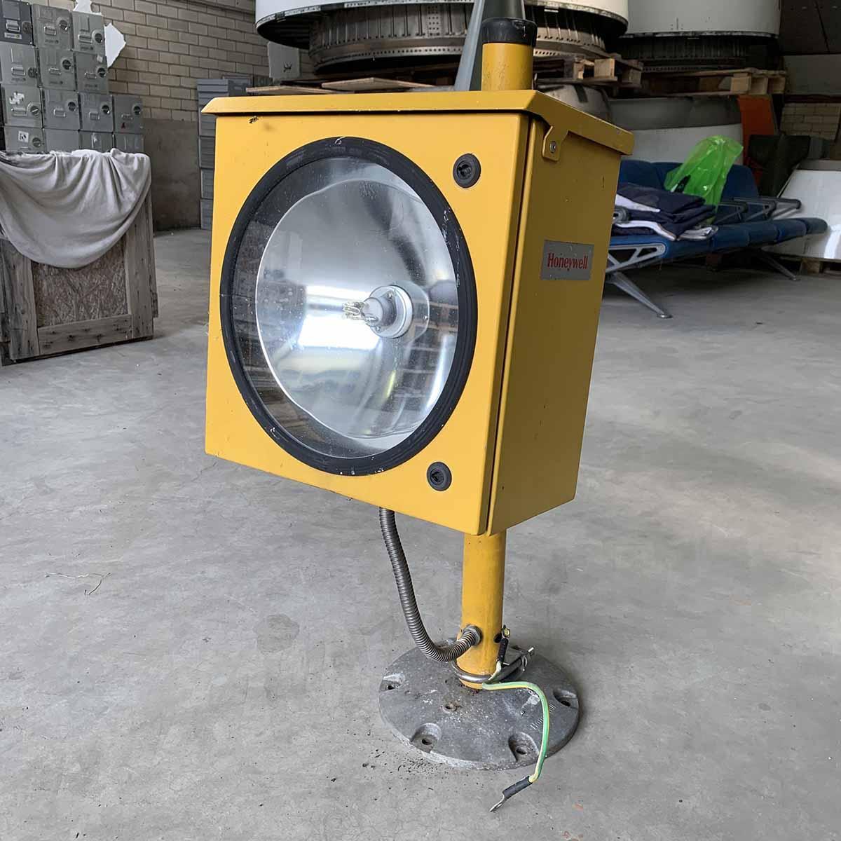 Original Honeywell ASL-40 approach sequence flash light, “running rabbit”. Can easily be modified to carry a regular 230V light bulb. Not cleaned. We have several, different heights. Height of box containing the light is adjustable.