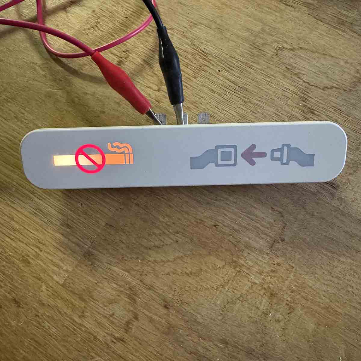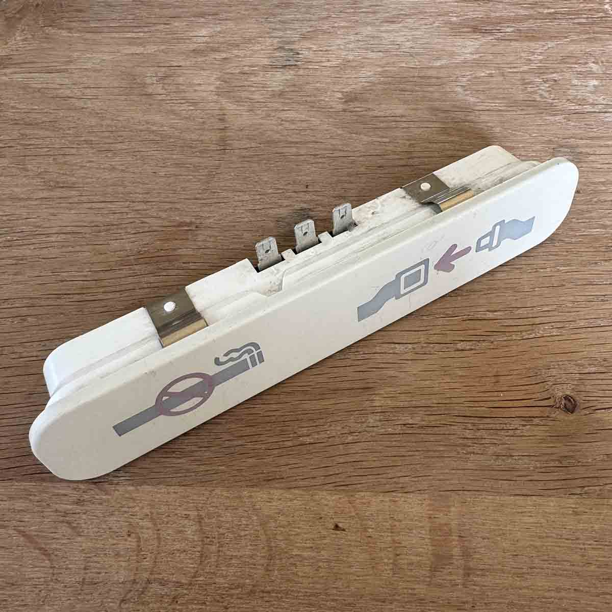 Original fasten seat belt and no smoking sign. These signs were used on British Airways Boeing 777s. The lights are still inside and will probably (no guarantees) light up when connected to the correct power source.