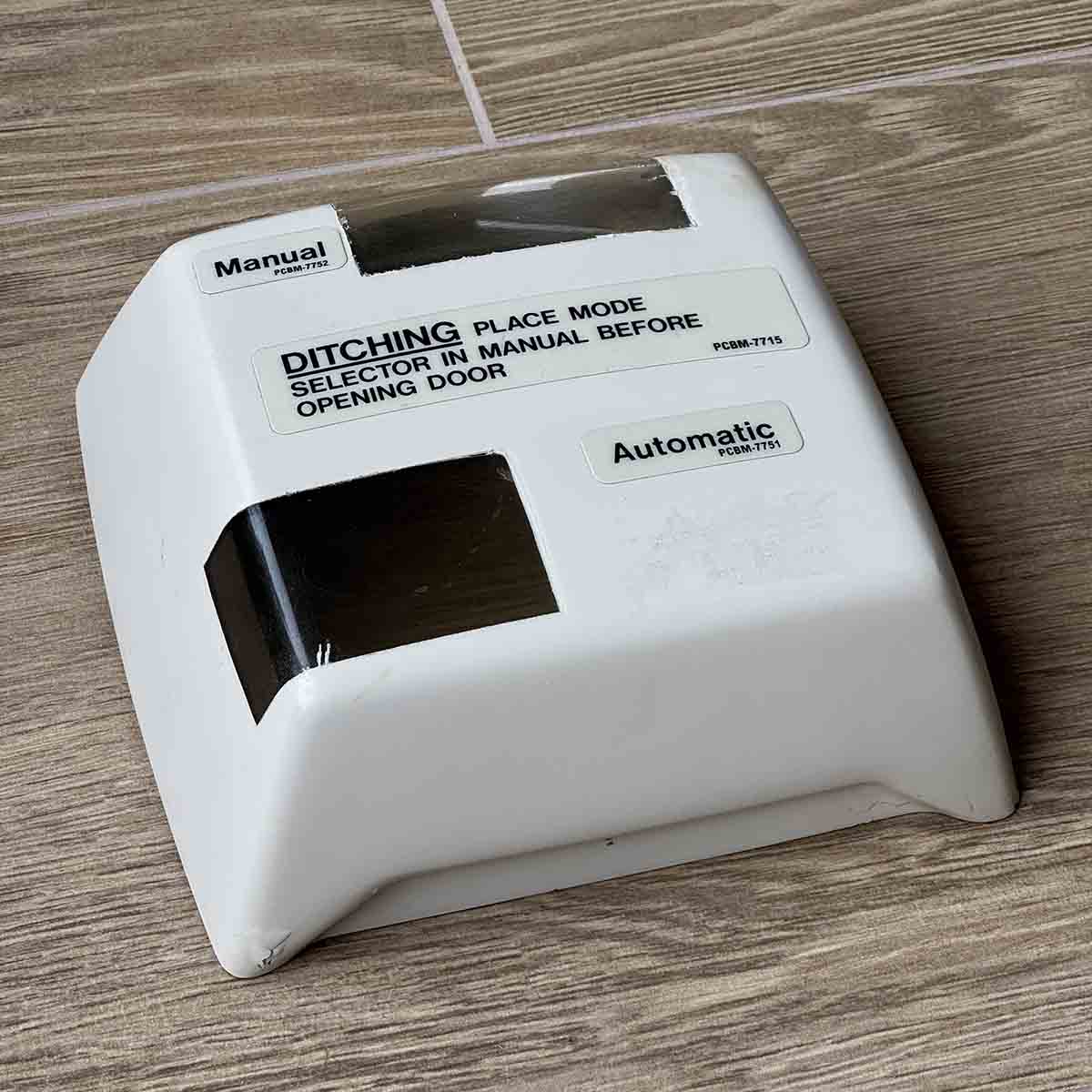 Original Boeing 747 door mode selector cover. This cover comes from a British Airways Boeing 747.