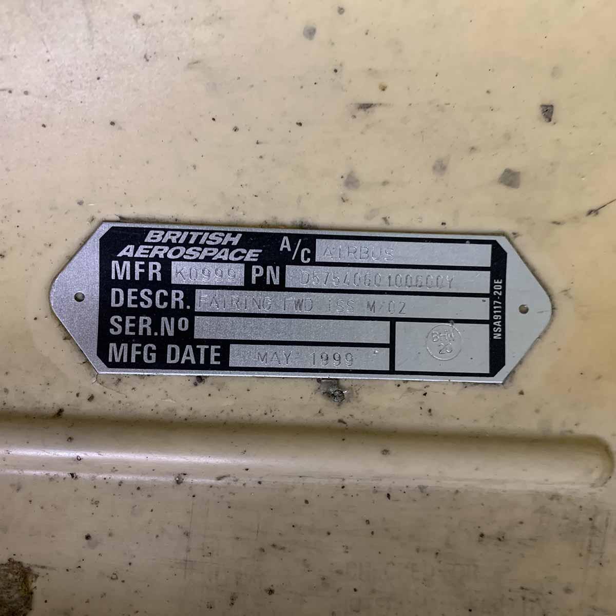Original Airbus A319 flap fairing. This fairing comes from Airbus A319-112 OO-SSC.