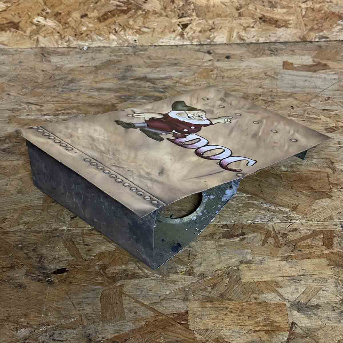 This piece was cut (rough) from the remains. This panel was polished. The DOC nose art was painted on later and is purely decorative.