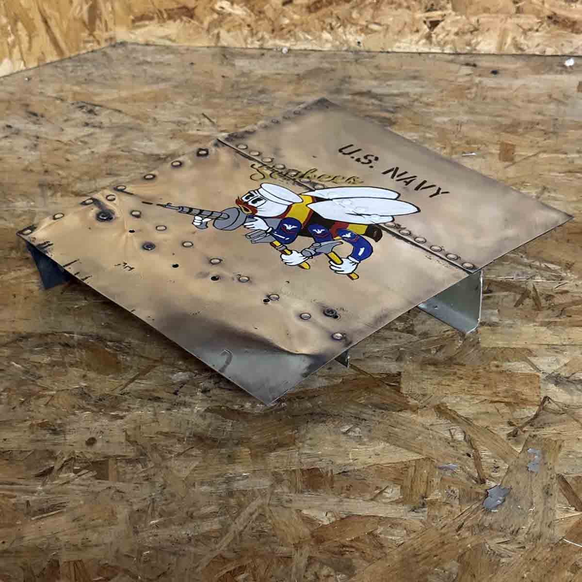 This piece was cut (rough) from the remains. This panel was polished. The USNavy Seabees nose art was painted on later and is purely decorative.