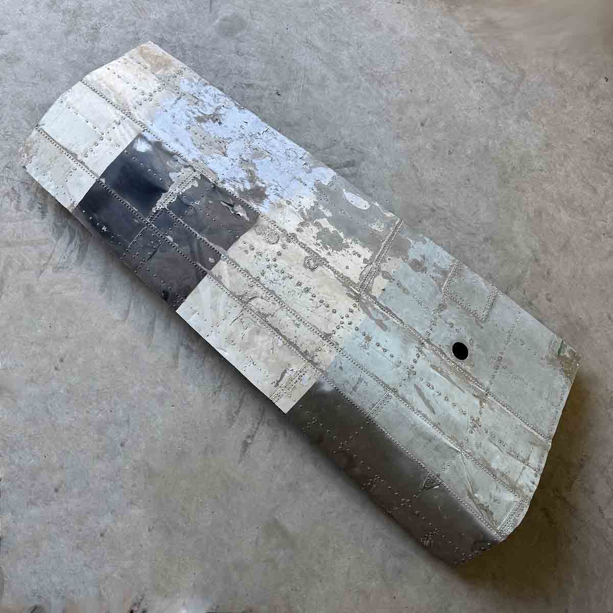 This is a rare and original piece of fuselage skin of World War II Douglas C-47B Dakota 44-76787. This aircraft was delivered to the United States Army Air Force on 24 April 1945 and transferred to the French Armée de l’Air the same year. This C-47 got stuck under an overpass in the Netherlands while being transported in August 2010. This piece was cut (rough) from the remains.