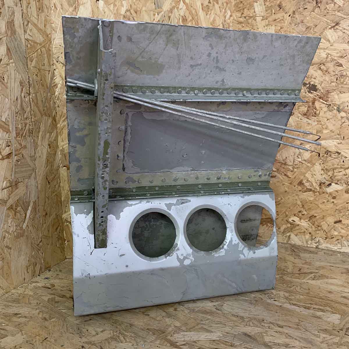 This is a rare and original piece of fuselage skin of World War II Douglas C-47B Dakota 44-76787. This aircraft was delivered to the United States Army Air Force on 24 April 1945 and transferred to the French Armée de l’Air the same year. This C-47 got stuck under an overpass in the Netherlands while being transported in August 2010.