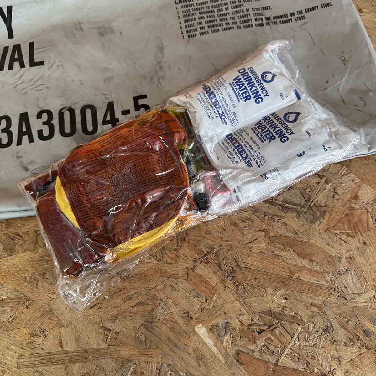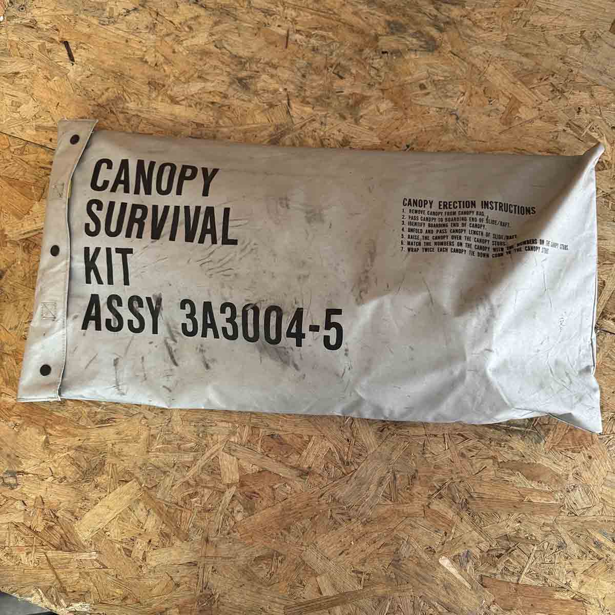 Original Boeing 747 liferaft canopy and survival kit. This item was used in Kuwait Airways Boeing 747 9K-ADE.