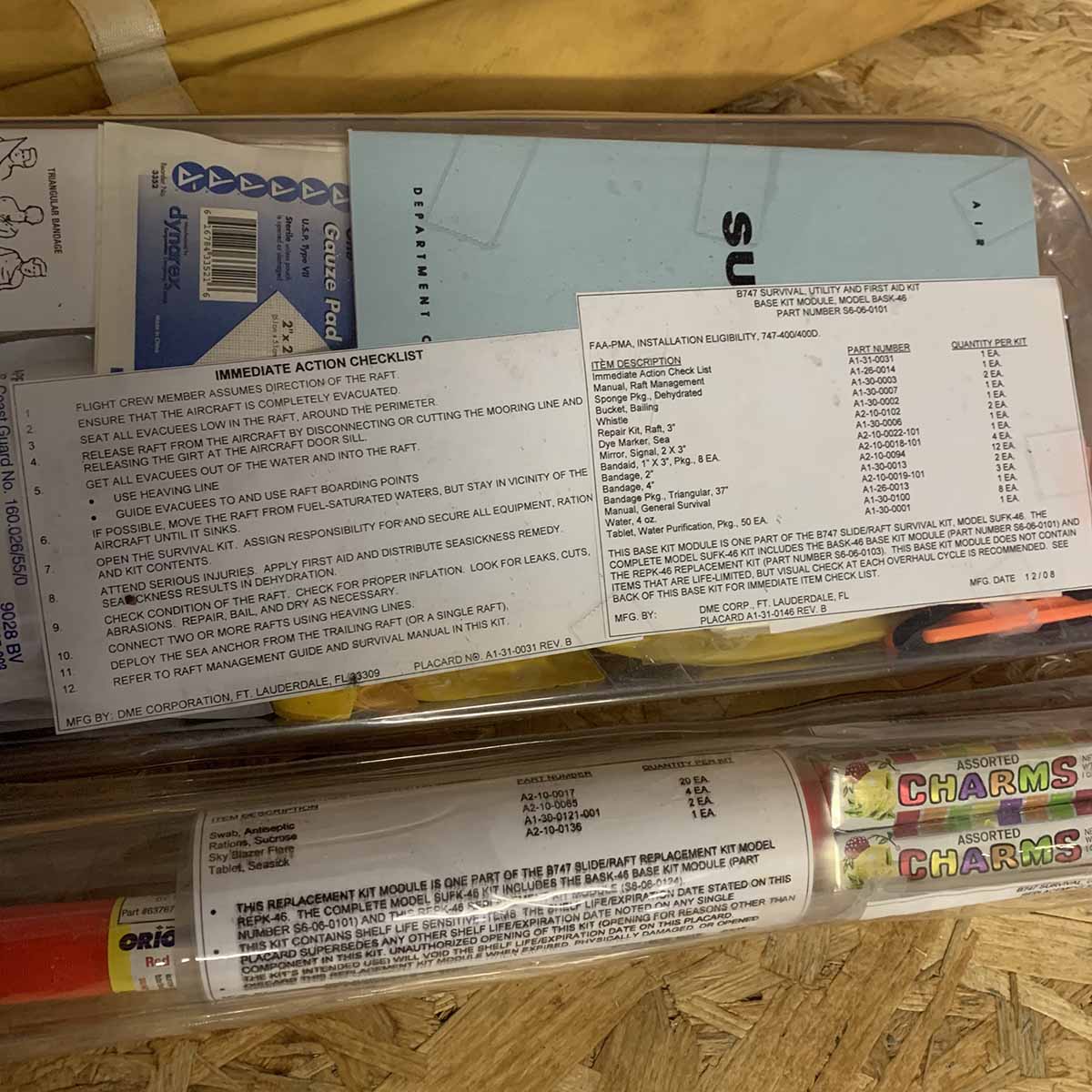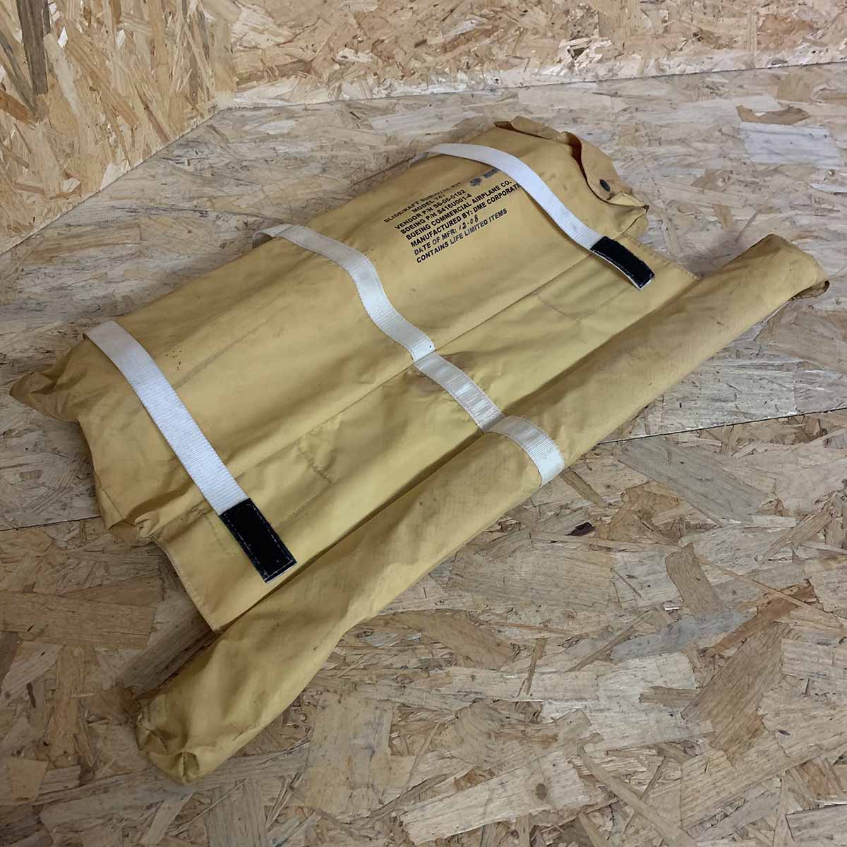 Original DME corporation slide liferaft survival kit. This kit was used in Kuwait Airways Boeing 747 9K-ADE.