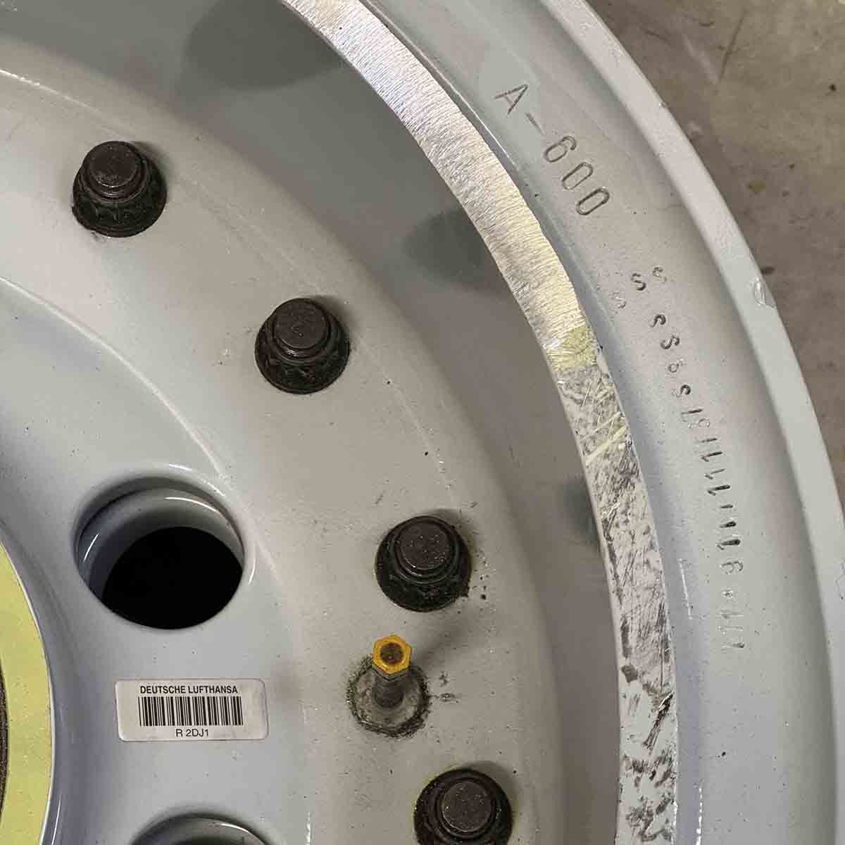 Original Lufthansa Airbus A319 main landing gear wheel.