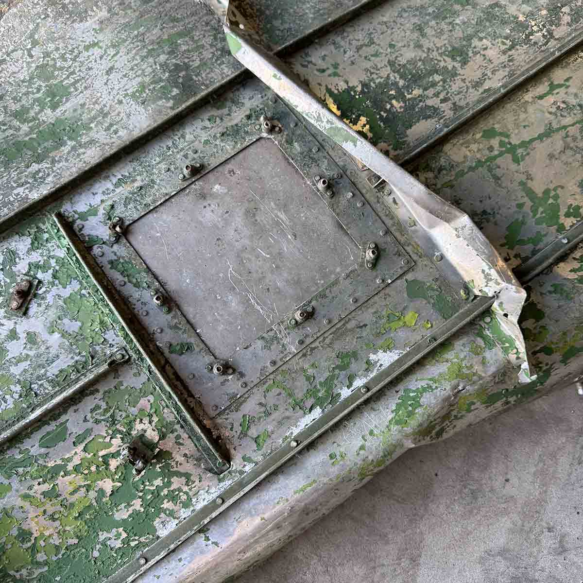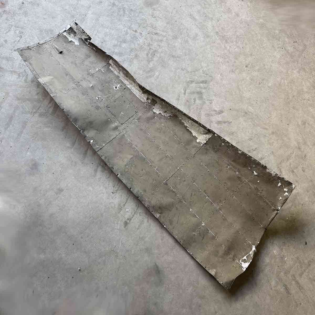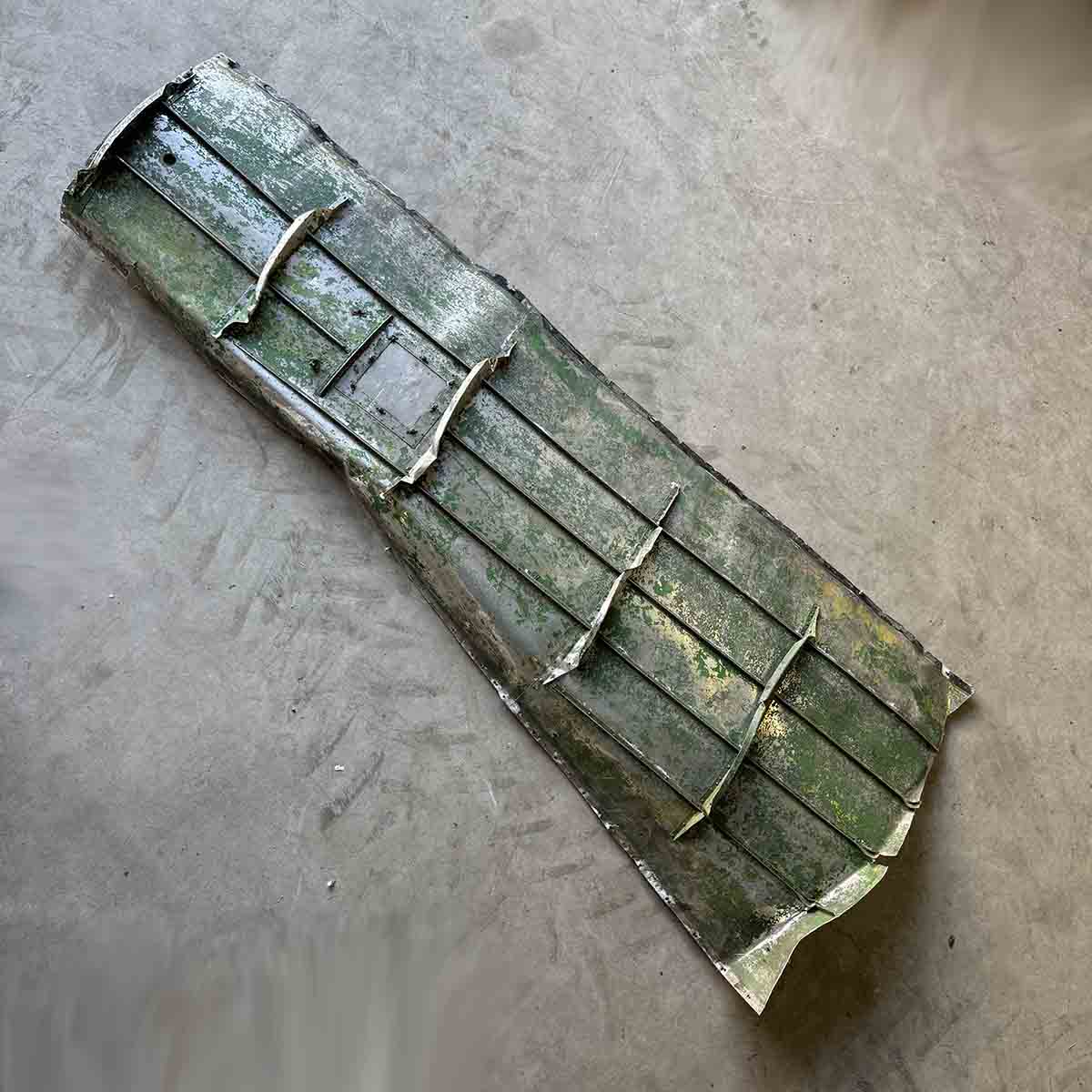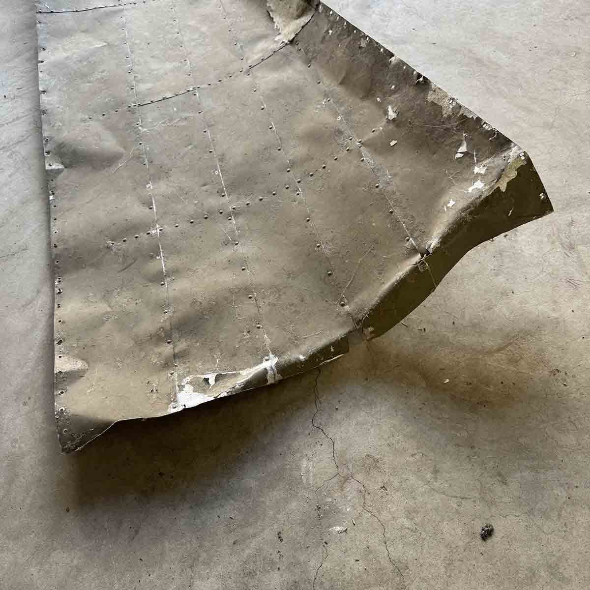 This is a rare and original piece of fuselage skin of World War II Douglas C-47B Dakota 44-76787. This aircraft was delivered to the United States Army Air Force on 24 April 1945 and transferred to the French Armée de l’Air the same year. This C-47 got stuck under an overpass in the Netherlands while being transported in August 2010. This piece was cut (rough) from the remains.