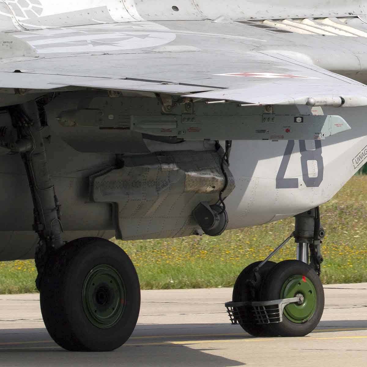 Polish Air Force Mikoyan Gurevich MiG-29 Fulcrum main landing gear wheel side table