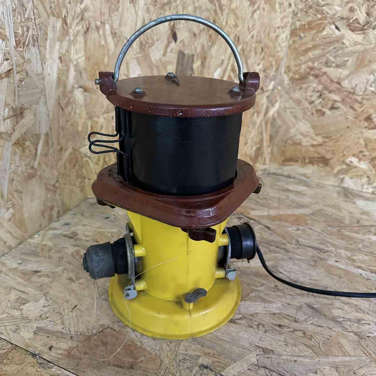 Czech made runway lights. In working condition. Two sliding parts enable directing the light and choosing between the white and orange colour. It can be detached from its base (and will be shipped with the base separated). Comes with a power cord with a connector and a switch.